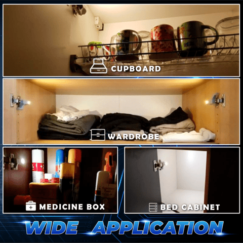 This LED Sensor Light can be used in the home, kitchen, office or hotel cabinet, closet, cupboard, or wardrobe which has a hinge.